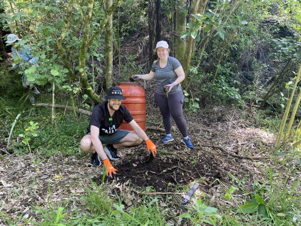 On 24 January, Hana Aickin and Amy Sadler. Catchment Co-ordinators from Mountains to Sea Conservation Trust, carried out an eDNA test of the stream water on the border of the Erikson’s and Harvey’s properties. eDNA is a scientific method used to detect species by collecting their genetic material shed into the aquatic environment. They were excited that the test detected the presence of Giant Bully, a regionally vulnerable species in Auckland.